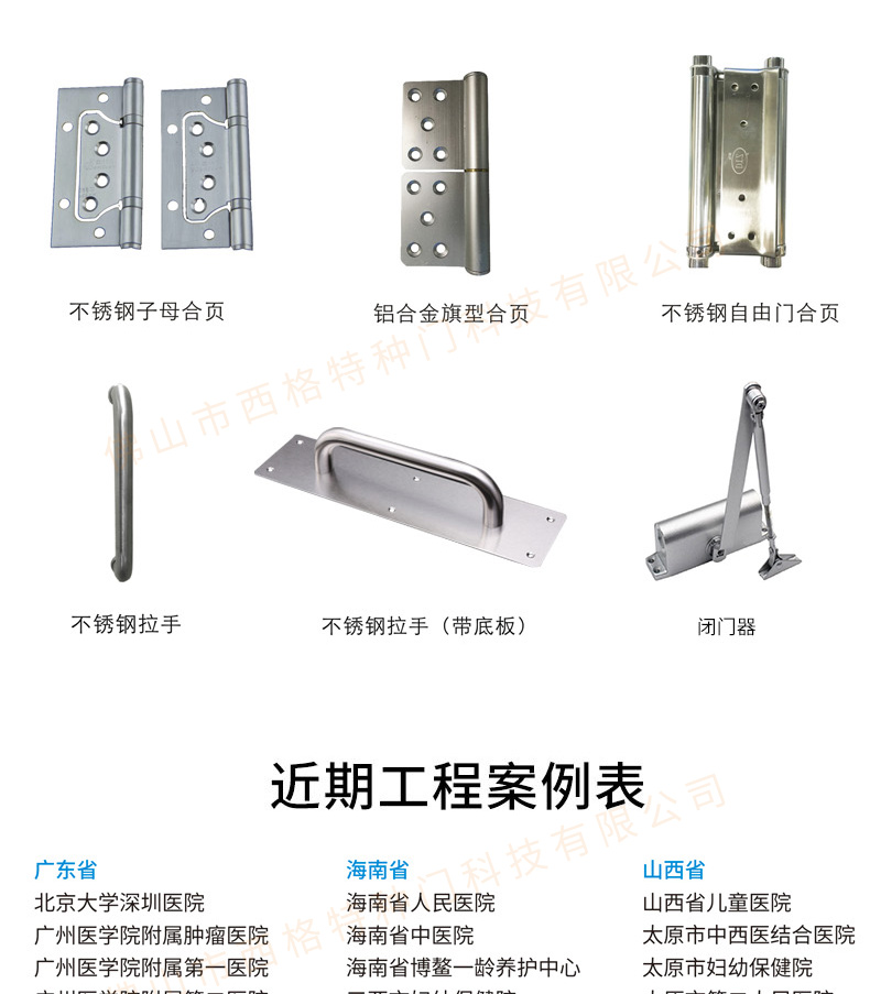 產(chǎn)品簡介:西格,多年來專注醫(yī)院門的生產(chǎn)與研發(fā),各種類、顏色的醫(yī)院門均可定制,歡迎咨詢。 產(chǎn)品價格:面議 咨詢熱線:400-6768-789