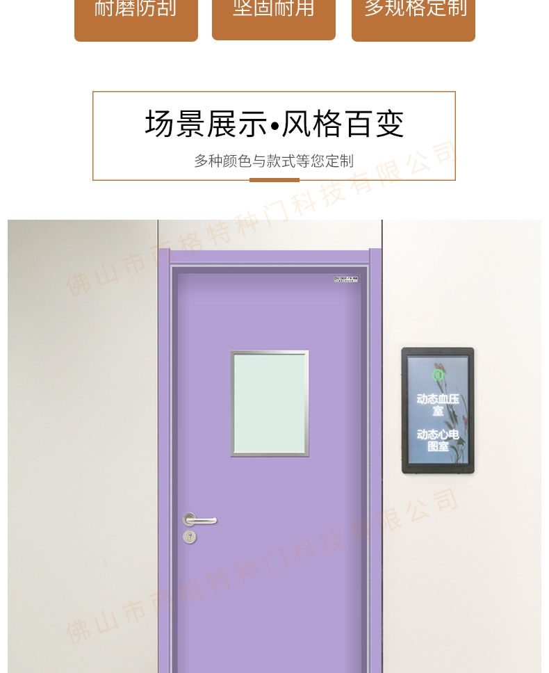 產品簡介:chnsige西格特種門,專業生產醫院門,醫院診室門,醫院辦公室門,醫院衛生間門,木質醫院門,鋼質醫院門,多鐘款式、顏色,尺寸可定制。